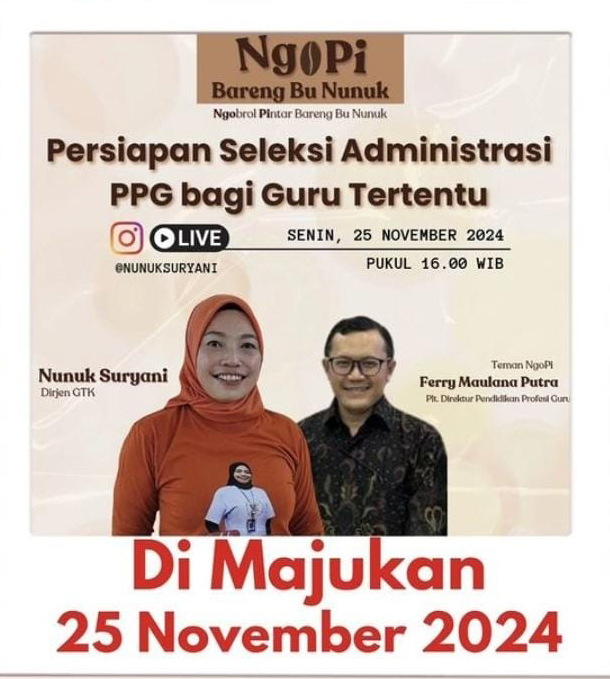 ukdogsite.com – Direktur Jenderal GTK, Nunuk Suryani, melalui akun Instagram resminya (@nunuksuryani), mengumumkan bahwa jadwal diskusi live Instagram bertajuk Ngopi Bareng Bu Nunuk dengan tema “Persiapan Seleksi Administrasi PPG bagi…